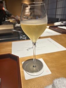 展示会をあとに、歯の着色を気にしてランチの飲み物はシャンパンにしました。